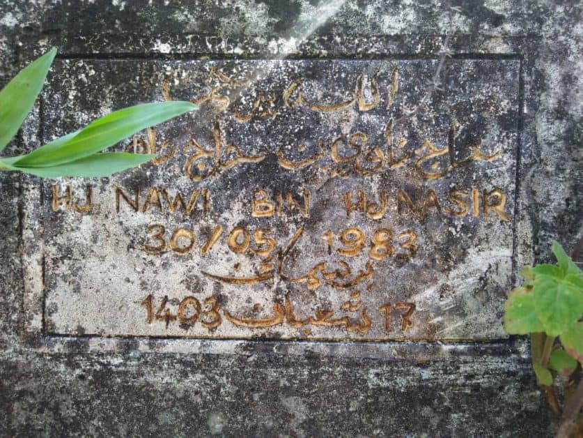 Hj. Nawi bin Hj. Nasir, ayah kepada nenek saya Hjh. Asmah Hj. Nawi (Mak Tok). Cerita Mak Tok, arwah Tok Nawi ni datangnya dari Siam. Dia mengembara dari satu tempat ke satu tempat yang lain, dan akhirnya menetap dan meninggal di Parit Jelutong.