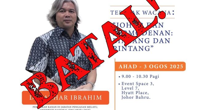 Benar, satu kenyataan rasmi telah dikeluarkan pihak penganjur. Namun penjelasan tersebut amat terhad dan gagal menjawab pertanyaan asas yang membelenggu orang ramai: Mengapa Wacana Johor Nan Jauhar ini dibatalkan begitu mendadak? Mengapa suara akademik berkaliber seperti Dr Azhar Ibrahim perlu dibungkam? Adakah jaminan jelas terhadap kesinambungan siri ini?