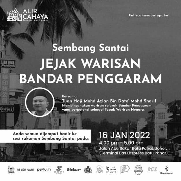 Pada 16 Januari 2022, Alir Cahaya telah menjemput Tuan Haji Mohd Azlan Bin Dato Mohd Sharif (Azlan Sharif) bagi tujuan perkongsian Jejak Warisan Bandar Penggaram, Batu Pahat secara ringkas.