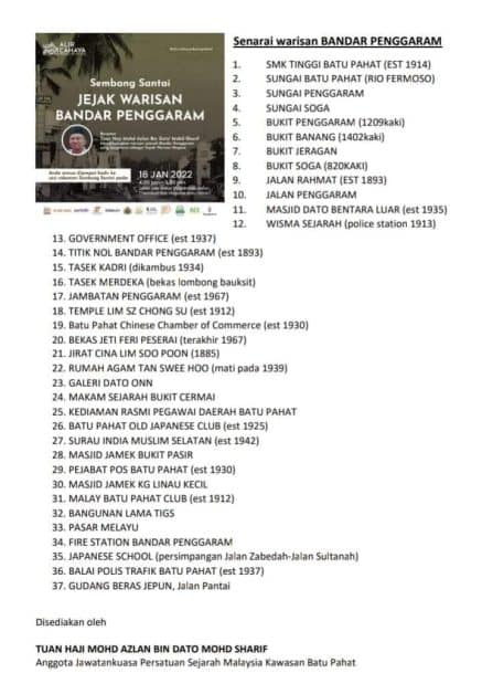 Azlan Sharif beekongsi 37 senarai warisan Bandar Penggaram.