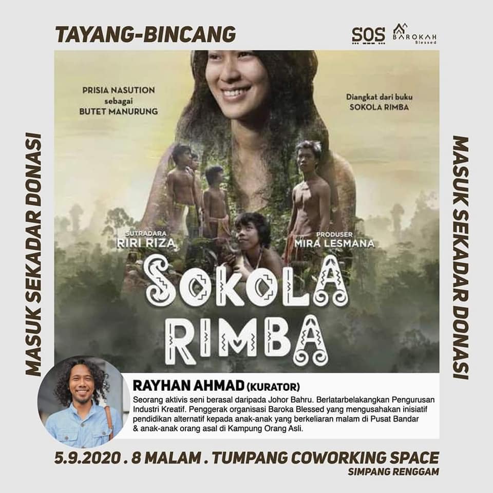 Awal bulan 9/2020 yang lepas, KN sempat Tumpang kali pertama untuk join Tayang-Bincang: Sokola Rimba yang dijalankan Sekola Baroka, di mana Rayhan Ahmad sebagai kurator. Sebagai penggerak kolektif yang mandiri, Sekolah Baroka adalah salah satu organisasi yang perlu ZDJ kongsikan jika berpeluang. Sebagai individu, aku mengenal kerja-kerja mereka sebelum forum ni lagi, Rayhan salah seorang yang bertanggung-jawab dalam pengurusannya juga adalah kawan sejak dibangku asrama dan sekolah lagi. Sama-sama di gantung asrama kemudian menumpang rumah pakcik member dalam tempoh di gantung itu.