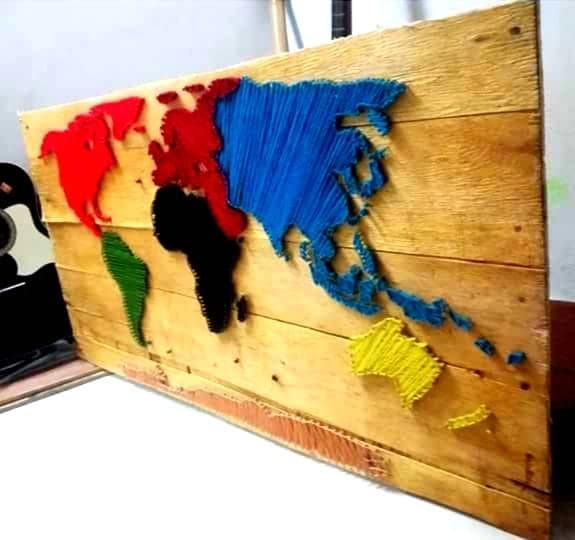 Walau bagaimana pun, di serata dunia, seni ini memang telah lama populer. Boleh sahaja buat carian di internet, macam-macam jenis string art yang ada. Dari ukuran matematik, kepada konsep 3D, geometri, dan instalasi. Menurut rujukan, string art awalnya berasal dari aktiviti “curve stitch” yang ditemukan oleh Mary Everest Boole, seorang ahli matematik dari Inggeris pada abad ke-19. Mary membuat string art untuk menjelaskan konsep matematik supaya mudah difahami oleh kanak-kanak tentang algebra dan geometri, kemudian menerbitkan sebuah buku philosophy and fun of algebra mengenai penjelasan metod pembelajaran yang menggunakan string art sebagai kaedahnya.